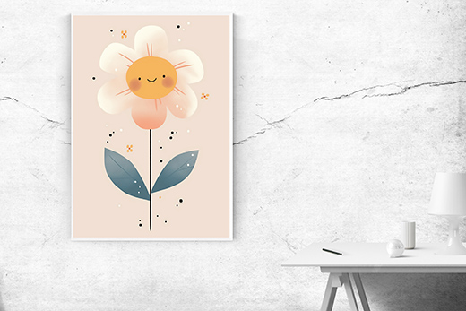 Kunstdruck freundliche Blume rosa