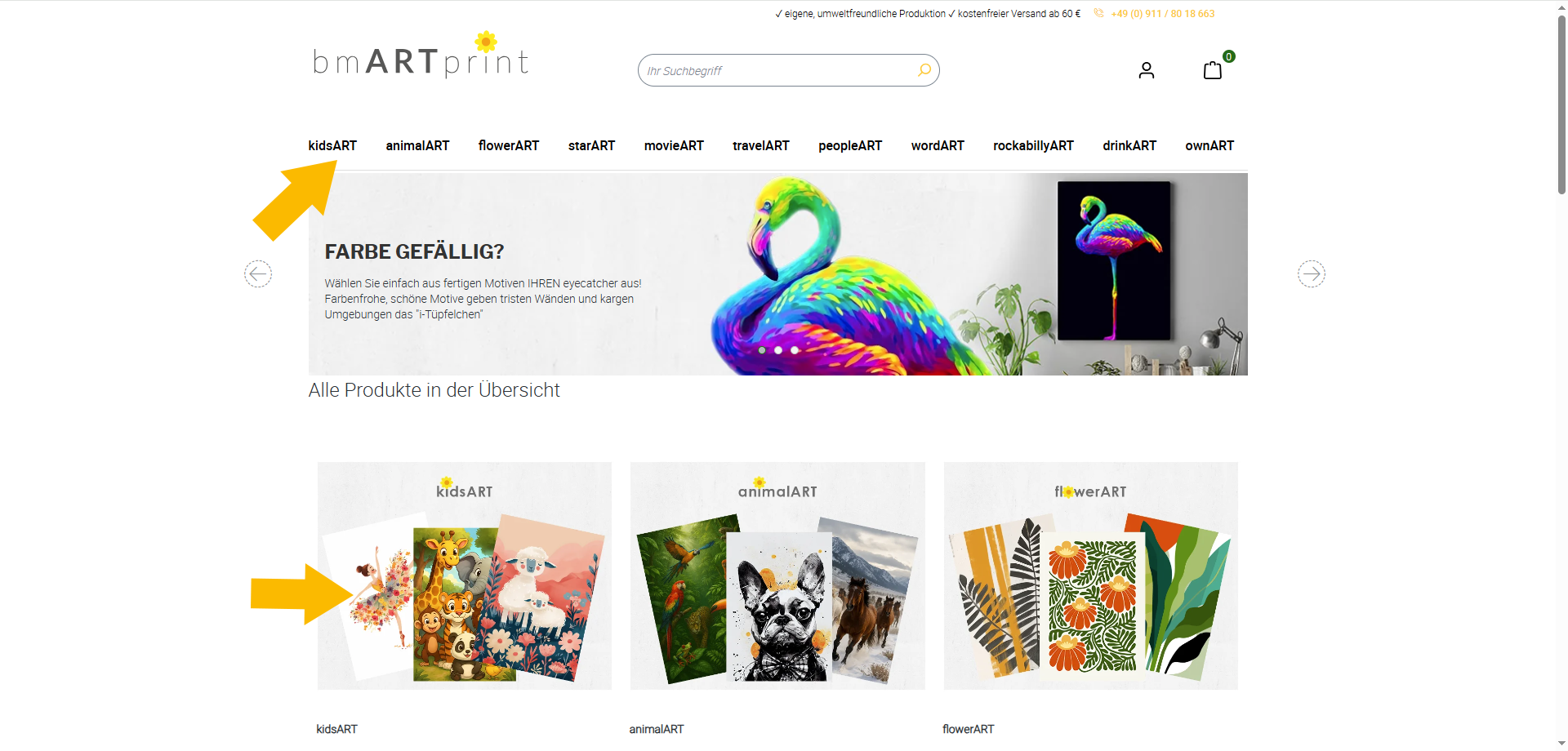 Zunächst suchen Sie sich die gewünschte Kategorie aus.