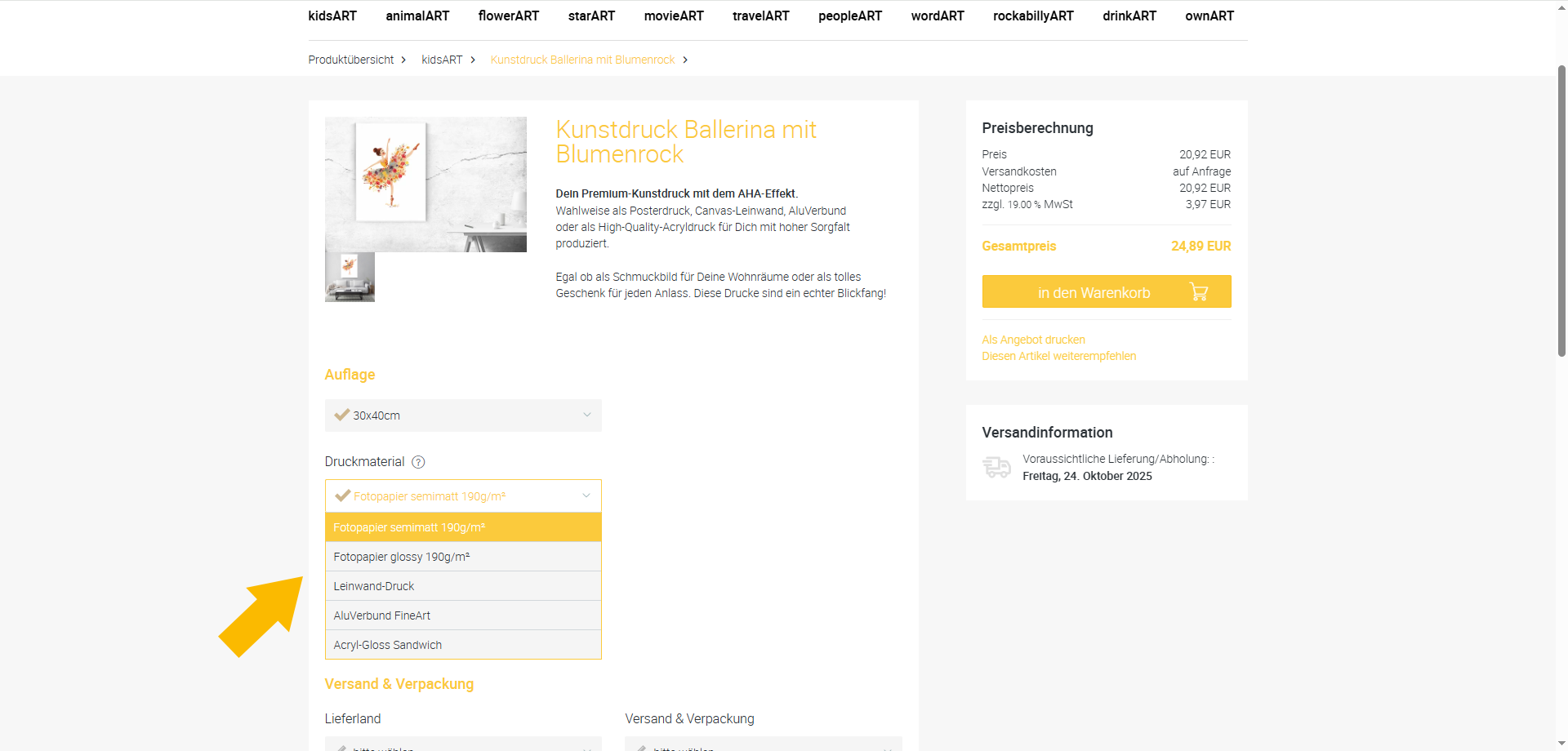 Bitte wählen Sie Papier-/Materialart, der Preis aktualisiert sich: